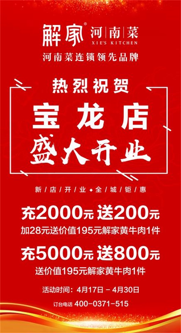 解家河南菜宝龙广场店开业 12个打卡景点给你场景化美食体验